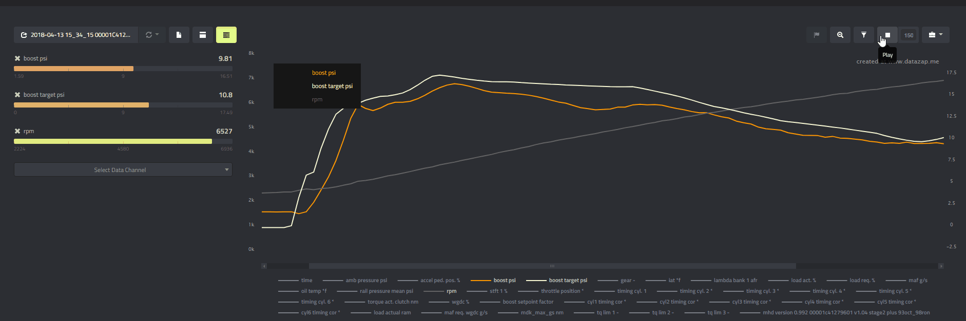 It’s been said bunch that the PWG turbo is well… Tiny. The dyno run and logs show that, once it get’s into higher RPM’s that tiny little compressor just can’t push the volume of air needed to make the chart go up.